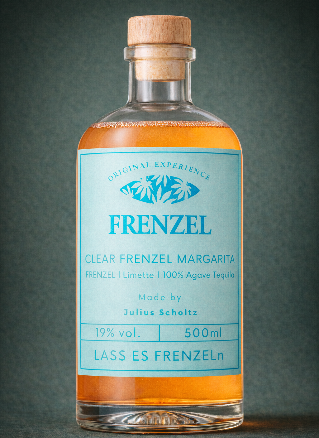 Die "CLEAR FRENZEL MARGARITA" ist ein weiteres Projekt für "FRENZEL". Hierfür wird die klassische Struktur einer Margarita mit Grapefruitlikör ergänzt und durch vegane Milch gefiltert.